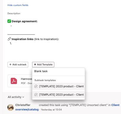 If your team uses custom fields extensively, make sure they are included in your subtask templates. This could be anything from ‘Budget Allocated’ and ‘Client Contact’ to ‘Approval Status’ or ‘Resource Needed’. By including these fields in your template, you ensure that all necessary data points are captured from the outset. When a template is applied, these custom fields will appear on the subtasks, ready to be filled in. This maintains data integrity and consistency across all similar tasks, making reporting and analysis much simpler down the line. It ensures you’re not missing any critical information needed for that specific type of workflow.