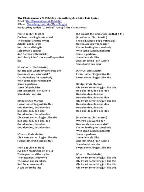 “And I want something just like this.” This is the repeated mantra, the core desire. And then it gets really specific and beautiful: “Doo-doo-doo, doo-doo-doo, doo-doo / Doo-doo-doo, doo-doo-doo, doo-doo.” The “doo-doo-doo” part, while simple, acts as a placeholder for the inexpressible feelings, the unspoken understanding, the quiet comfort that defines this desired relationship. It’s the sound of easy companionship, of shared silence that isn’t awkward, of a deep, intuitive connection. Then come the lines that solidify the theme: “I want something just like this / I want something just like this / I want something just like this.” But this time, it’s followed by the qualities he’s actually seeking: “Where the fire glows / And the light shines.” This signifies warmth, passion, and positivity. He wants a relationship that is vibrant and alive. “And the thunder rolls / And the lightning strikes.” This isn’t about fear; it’s about excitement, about the natural forces that can be both powerful and beautiful. It’s about experiencing life’s intensity together . It’s about the highs and lows, the dramatic moments, but experienced within the context of a solid, loving partnership. The contrast here is key: he dismisses the supernatural ability to control these elements (like a superhero) but embraces the natural occurrence of them within a relationship. He wants the experience of intense emotions and life’s dramatic turns, but grounded in a shared, human connection. It’s about embracing the full spectrum of life with someone by your side, not about possessing god-like powers. The