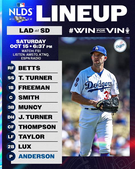 When you look at the Dodgers lineup today , consider the performance of each player leading up to this game. Are they hot? Are they in a slump? The manager has to weigh these factors heavily when setting the lineup. It’s not just about who should be playing, but who is ready to play. The mental aspect is huge in the playoffs. Players who are confident and in a good rhythm often find themselves in the starting lineup. The manager is trying to put the best possible combination of players on the field, in the right spots, to maximize their chances of success. This means understanding each player’s strengths, their recent performance, and how they handle pressure. The expectations for each player are high, but they are also tailored to their individual abilities and their position in the lineup. It’s a delicate balance that the manager navigates with every decision.