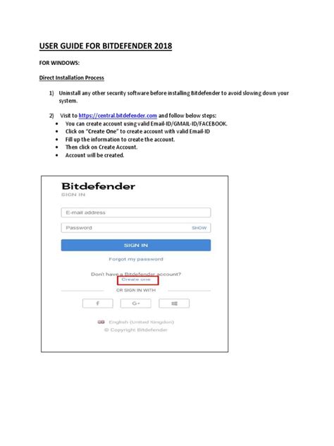 7. Create or Log in to Your Bitdefender Account: Once the installation is complete, you’ll be prompted to create a Bitdefender account or log in to an existing one. If you don’t have an account, you can create one for free. This account will be used to manage your Bitdefender subscription and access online features.