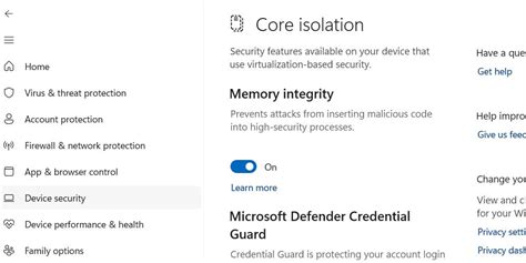 3. Navigate to Core Isolation: In the Windows Security app, click on “Device Security.” This will take you to a screen that shows the security features available on your device. Look for the “Core Isolation” section and click on it.