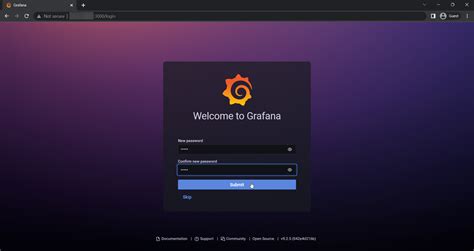 When you first visit the page, you’ll be prompted to log in. The default username and password for Grafana OSS are: