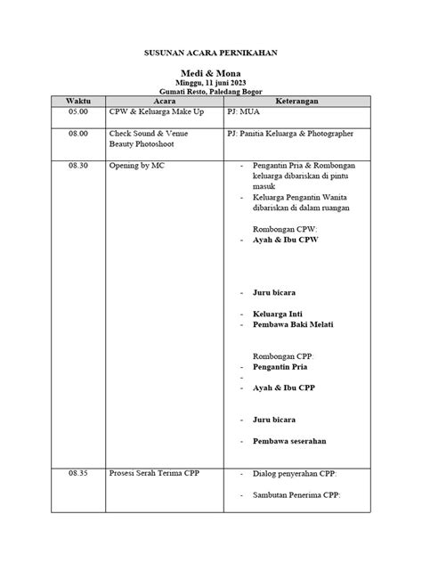 Even with fewer guests, a well-structured rundown, or schedule, is essential for an intimate wedding. Think of it as your wedding day blueprint. It keeps everyone on the same page, from vendors to family members, and ensures a seamless flow from ceremony to reception. Without a rundown, things can get chaotic. Trust me, you don’t want to be figuring out where the cake should go or when the first dance should be on your wedding day. A detailed plan allows you to relax and savor every moment, knowing that everything is under control. It also helps your vendors – photographers, caterers, musicians – coordinate their services effectively, leading to a smoother and more enjoyable experience for everyone involved.