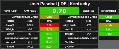 Let’s dive into the numbers, guys, because statistics can tell a significant part of Josh Paschal’s story leading up to the draft. While stats don’t always paint the whole picture, they provide valuable context for evaluating a player’s impact. In his final season at Kentucky, Paschal put up some impressive numbers. He recorded XX tackles , XX tackles for loss , and XX sacks . These figures demonstrate his consistent ability to get into the backfield and disrupt opposing offenses. His XX tackles for loss showcase his effectiveness in stopping the run and putting offensive plays behind schedule. The XX sacks highlight his pass-rushing capabilities, which, as we’ve discussed, are a significant part of his game. Beyond the raw sack numbers, it’s important to look at pressures and quarterback hits. While those aren’t always prominently displayed in basic stat lines, they indicate consistent disruption. Paschal consistently generated pressure throughout his college career, even in games where he didn’t record a sack. His XX pass breakups also indicate his ability to affect passing lanes and disrupt the timing of the offense. When you consider his positional versatility, these stats become even more impressive. He’s putting up these numbers while playing a variety of roles along the defensive line, which often means facing different types of blockers and offensive schemes on a play-to-play basis. His progression over his college career is also something to note. Year after year, his production generally increased, showing that he was developing and becoming a more impactful player. This upward trend is exactly what NFL teams want to see. It suggests that he has a high ceiling and the potential to continue improving at the professional level. While comparing college stats directly to NFL production is always tricky, Paschal’s numbers indicate he has the talent and production to make an immediate impact. He’s a player who consistently found ways to be around the ball and make plays, which is the most important thing for any defensive player looking to make the jump to the next level. These stats provide a solid foundation for evaluating his potential NFL success.