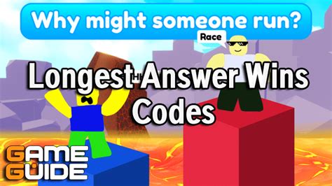 So, there you have it, guys! Everything you need to know to become a Longest Answer Wins baller and potentially snag some sweet Roblox codes. Remember, it’s all about creativity, elaboration, and a little bit of luck. So get out there, start typing, and have fun! Who knows, you might just surprise yourself with your hidden talent for crafting ridiculously long and entertaining answers. And who knows, you might just win enough Roblox codes to finally buy that dream item you’ve been eyeing. Good luck, and may the longest answer win!