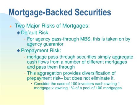 Okay, guys, let’s talk about the not-so-fun part: the risks associated with mortgage-backed securities (MBS) . While they can offer attractive returns, they’re definitely not without their dangers. One of the biggest risks is prepayment risk . Remember how homeowners can pay off their mortgages early, say by refinancing? Well, when that happens, investors get their principal back sooner than expected. If interest rates have fallen since the investor bought the MBS, they might not be able to reinvest that principal at a comparable rate, leading to lower overall returns. On the flip side, there’s extension risk . This happens when interest rates rise, and homeowners are less likely to pay off their mortgages early. The investor’s money is then tied up for longer than anticipated, potentially in a lower-yielding investment. Then there’s credit risk , which is the risk that the homeowners in the pool might default on their loans. If too many people stop paying, the cash flow to MBS investors dries up, and the value of the security can drop significantly. This risk is higher with non-agency MBS, especially those backed by subprime mortgages. We also have interest rate risk . The market value of existing bonds, including MBS, tends to fall when overall interest rates rise. This is because new bonds are being issued at higher yields, making older, lower-yielding bonds less attractive. Finally, the complexity of some MBS, particularly CMOs, can obscure the underlying risks. It can be really hard for investors to fully understand what they’re buying, leading to unexpected losses. So, before diving into MBS, it’s super important to do your homework and understand the specific risks involved with the particular security you’re considering.