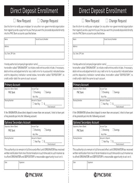 Alright, so you’re convinced, right? Setting up direct deposit is the way to go. The next step is getting the necessary information to your employer or the entity that pays you. This usually involves filling out a direct deposit form . So, where do you get this magical document? For PNC Bank, it’s pretty straightforward. Most employers will provide you with their specific direct deposit authorization form. This is the most common scenario, and it’s usually part of your onboarding paperwork when you start a new job. It will typically ask for your bank name (PNC Bank, N.A.), your account number, and the routing number for PNC. You might also have options to split your deposit between multiple accounts or have a portion directly deposited while receiving the remainder as a paper check, though that’s becoming less common. It’s always best to use the form provided by your employer as it’s tailored to their payroll system. If your employer doesn’t provide a form , or if you need the information for other purposes, like setting up recurring payments or receiving benefits, you can usually find the required details directly within your PNC online banking portal or mobile app. Log in to your PNC account, navigate to your account details, and you should be able to find your account and routing numbers there. Alternatively, you can always visit a PNC Bank branch and speak with a banker. They can print a form for you or provide you with all the necessary account and routing numbers. They might even have a generic direct deposit form you can take with you, though again, your employer’s form is usually preferred. Remember, the routing number for PNC Bank is 041001036 . This is a crucial piece of information that identifies PNC Bank within the banking system. For your account number, you’ll need the specific number for the PNC checking or savings account where you want the funds deposited. Double-check everything before submitting! A simple typo could delay your funds or send them to the wrong account, which is a nightmare nobody wants. So, take your time, be meticulous, and ensure all the details are accurate. Getting this form right is the key to unlocking all those sweet direct deposit benefits.