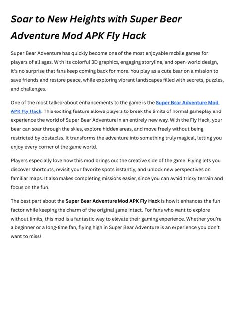 Super Bear Adventure MOD APK: Fly, Hack & Unlimited Fun!