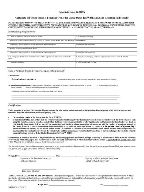 This is the final step, the certification section. Here, you’re essentially swearing under penalty of perjury that the information you’ve provided on the form is true, correct, and complete. You’ll sign and date the form. It’s vital to read this certification statement carefully before signing. You’re confirming that you are the beneficial owner of the income, that you are not a US person, and that you meet the requirements of the tax treaty or exemption you’re claiming. Once signed, this form becomes a legally binding document. Make sure you have a clear understanding of everything you’ve attested to. If any of the information changes later on (e.g., you become a US resident), you’ll need to notify the withholding agent and potentially provide a new Form W-9 (for US persons) or an updated Form 8BEN if you remain a foreign person but your circumstances change.