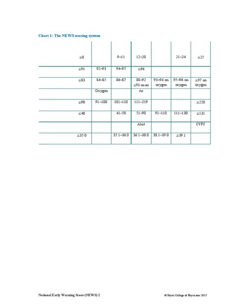 The beauty of the NEWS2 chart lies in its simplicity and clarity. It’s designed to be easy to use, even in high-pressure situations. The chart provides clear guidelines on how to score each vital sign, minimizing the risk of errors. Furthermore, the chart includes escalation protocols, outlining the steps that should be taken based on the overall NEWS2 score. This ensures that concerns are addressed promptly and appropriately, leading to better patient care.