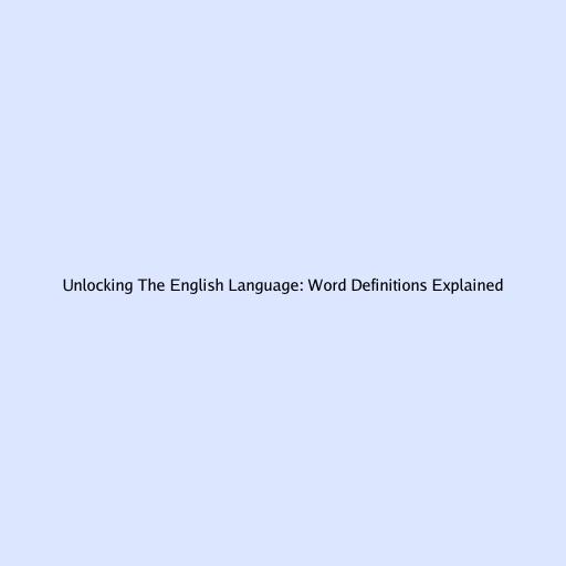 Unlocking the English Language: Word Definitions Explained