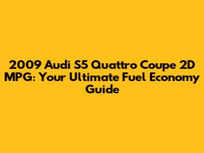 Hey guys! Are you curious about the 2009 Audi S5 Quattro Coupe 2D MPG? You've come to the right place! Understanding the fuel efficiency of a vehicle is super important, whether you're thinking about buying one or just want to know more about your current ride. Let's dive into everything you need to know about the 2009 Audi S5 and its MPG.