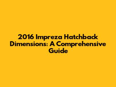 By considering all these dimensions, you can make a well-informed decision about whether the 2016 Impreza Hatchback is the right car for you. It's a versatile and practical vehicle that offers a compelling combination of space, comfort, and functionality.