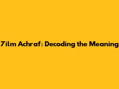 7ilm Achraf: Decoding The Meaning