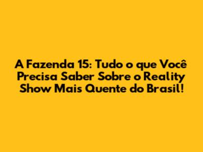 A Fazenda 15 promete ser uma temporada inesquecível, com muitas emoções, polêmicas e diversão. E a melhor parte é que você pode acompanhar tudo isso de perto, assistindo A Fazenda ao vivo agora 24 horas. Prepare-se para torcer pelos seus favoritos, vibrar com cada vitória e se emocionar com cada momento. Não perca tempo e comece a acompanhar A Fazenda 15 agora mesmo! Assista A Fazenda ao vivo agora 24 horas e não perca nenhum detalhe!