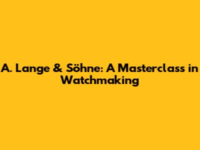A. Lange & Söhne: A Masterclass In Watchmaking