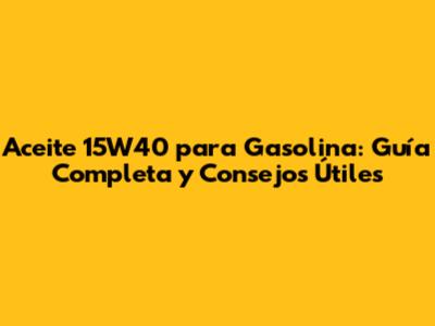 Aceite 15W40 Para Gasolina: Guía Completa Y Consejos Útiles
