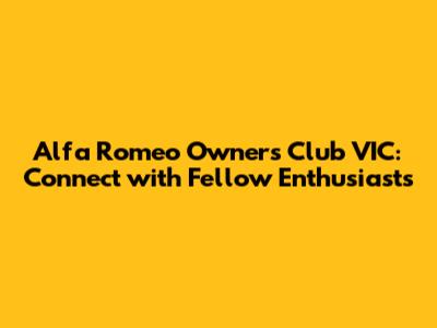 Alfa Romeo Owners Club VIC: Connect With Fellow Enthusiasts