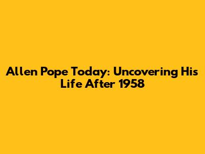 Allen Pope Today: Uncovering His Life After 1958