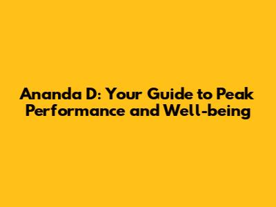 Ananda D: Unveiling The Secrets Of Optimal Health
