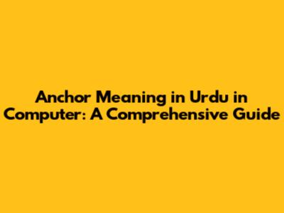 Anchor Meaning In Urdu In Computer: A Comprehensive Guide
