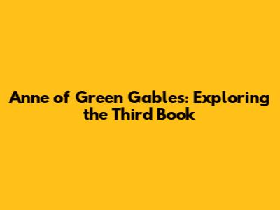 Anne Of Green Gables: Exploring The Third Book