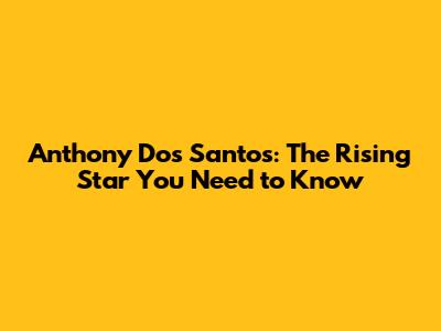 Anthony Dos Santos: The Rising Star You Need To Know
