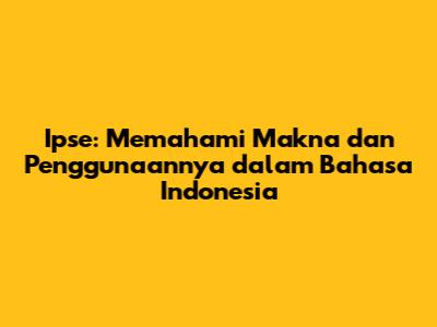 Apa Itu Ipse, Pengertian Dan Maknanya Dalam Bahasa Indonesia?