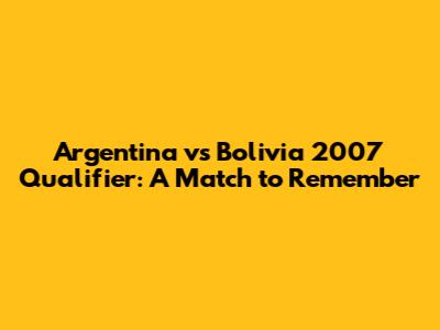 Argentina Vs Bolivia 2007 Qualifier: A Match To Remember