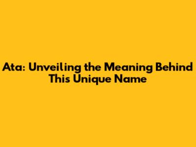 Ata: Unveiling The Meaning Behind This Unique Name