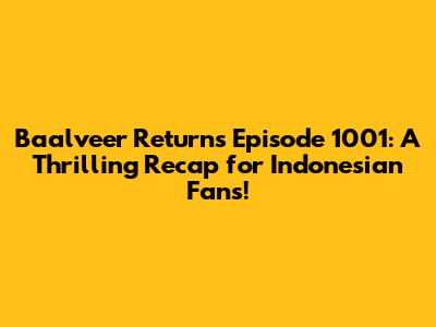 Episode 1001 of Baalveer Returns is a must-watch for all fans. The episode includes thrilling action, emotional depth, and plot twists that will leave you wanting more. The Indonesian dubbing makes it accessible and enjoyable for the local audience.