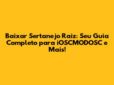 Baixar Sertanejo Raiz: Guia Completo Para IOSCMODOSC E Mais!