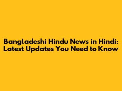 Bangladeshi Hindu News In Hindi: Latest Updates
