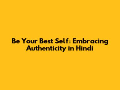 Be Your Best Self: Embracing Authenticity In Hindi