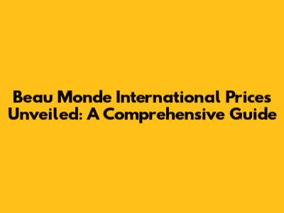 Beau Monde International Prices Unveiled