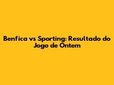 Benfica Vs Sporting: Resultado Do Jogo De Ontem