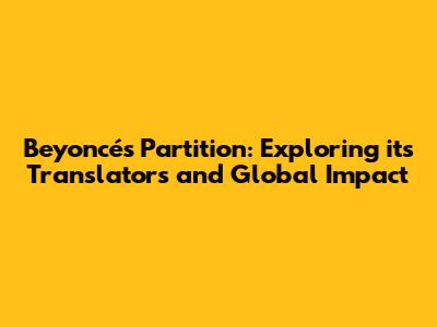 Beyoncé's Partition: Exploring Its Translators And Global Impact