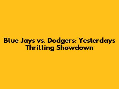 Blue Jays Vs. Dodgers: Yesterday's Thrilling Showdown