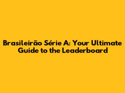 Brasileirão Série A: Your Ultimate Guide To The Leaderboard