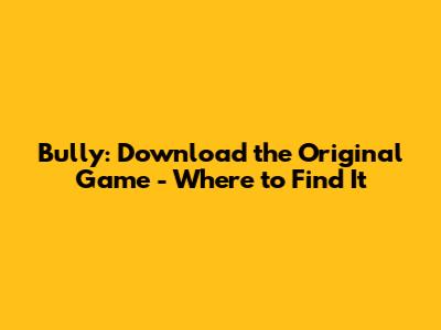 Bully: Download The Original Game - Where To Find It