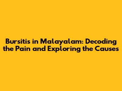 Bursitis In Malayalam: Understanding The Pain And Causes