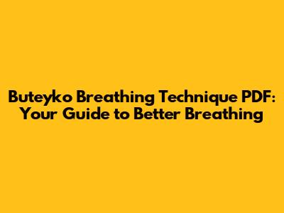 Free Buteyko Breathing Technique PDF