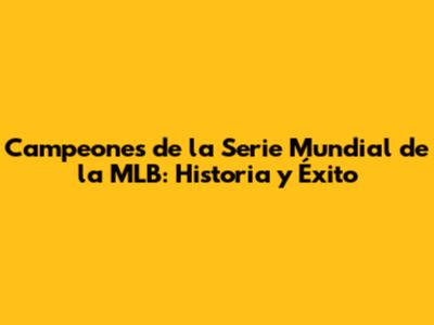 Campeones De La Serie Mundial De La MLB: Historia Y Éxito
