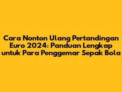 Selamat datang, teman-teman penggemar sepak bola! Euro 2024 sudah di depan mata, dan pasti banyak dari kita yang tidak ingin melewatkan satu momen pun dari turnamen bergengsi ini. Tapi, bagaimana kalau kalian punya jadwal yang padat atau berada di zona waktu yang berbeda sehingga sulit untuk menonton langsung setiap pertandingan? Jangan khawatir, karena artikel ini hadir untuk membahas secara tuntas cara nonton ulang pertandingan Euro 2024.