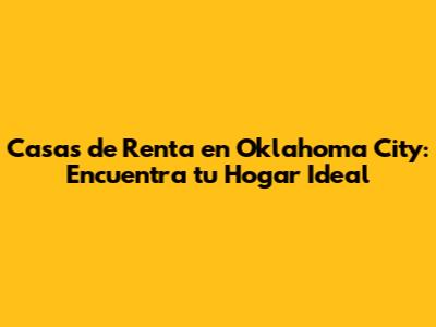 Casas De Renta En Oklahoma City: Encuentra Tu Hogar Ideal