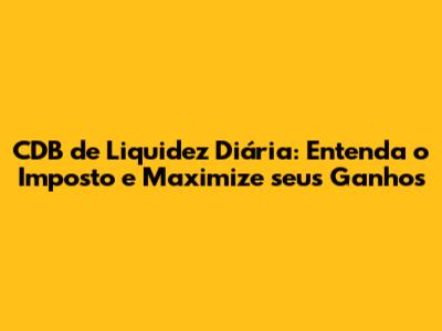 CDB De Liquidez Diária: Imposto E Como Otimizar Seus Investimentos