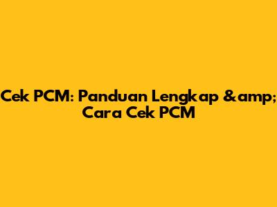 Cek PCM: Panduan Lengkap & Cara Cek PCM