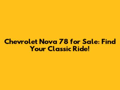 Chevrolet Nova 78 For Sale: Find Your Classic Ride!