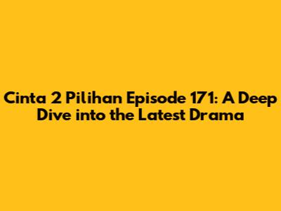 Hey everyone, drama lovers! Today, we're diving headfirst into Cinta 2 Pilihan episode 171. If you're anything like me, you've been on the edge of your seat, waiting to see what twists and turns the story throws our way. In this detailed recap, we'll break down the key moments, analyze the character dynamics, and maybe, just maybe, try to predict what's coming next. So, grab your snacks, settle in, and let's get started. We'll be looking closely at the events, the emotional rollercoasters, and of course, those cliffhangers that keep us all coming back for more. This is your ultimate guide to understanding everything that went down in episode 171. Remember, Cinta 2 Pilihan is known for its intricate storylines and compelling characters, so we'll leave no stone unturned as we explore this latest installment. We'll also take a look at the acting, the plot developments, and the underlying themes that make this series so captivating. Let’s unravel the mysteries and discuss the dramatic highlights of episode 171. Get ready for a thrilling journey through the world of Cinta 2 Pilihan!