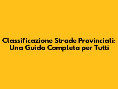 Classificazione Strade Provinciali: Guida Completa